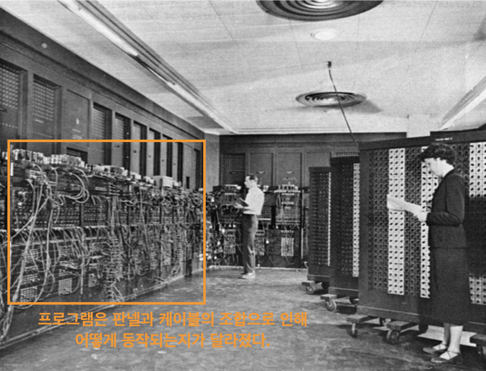 프로그램은 컴퓨터 외부의 판넬에 존재하여 판넬과 케이블을 조합으로 인해 프로그램이 어떻게 동작되는지가 달라졌다.