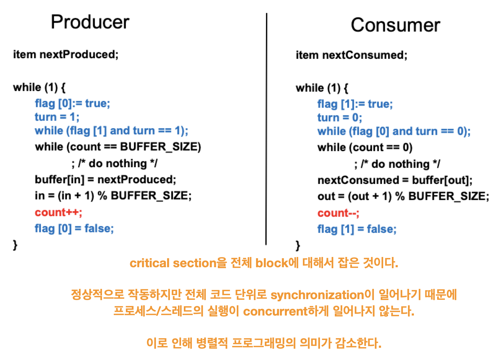그리고 consumer는 buffer empty 일 때 read 하지 않기 위해서 blocking을 한다.